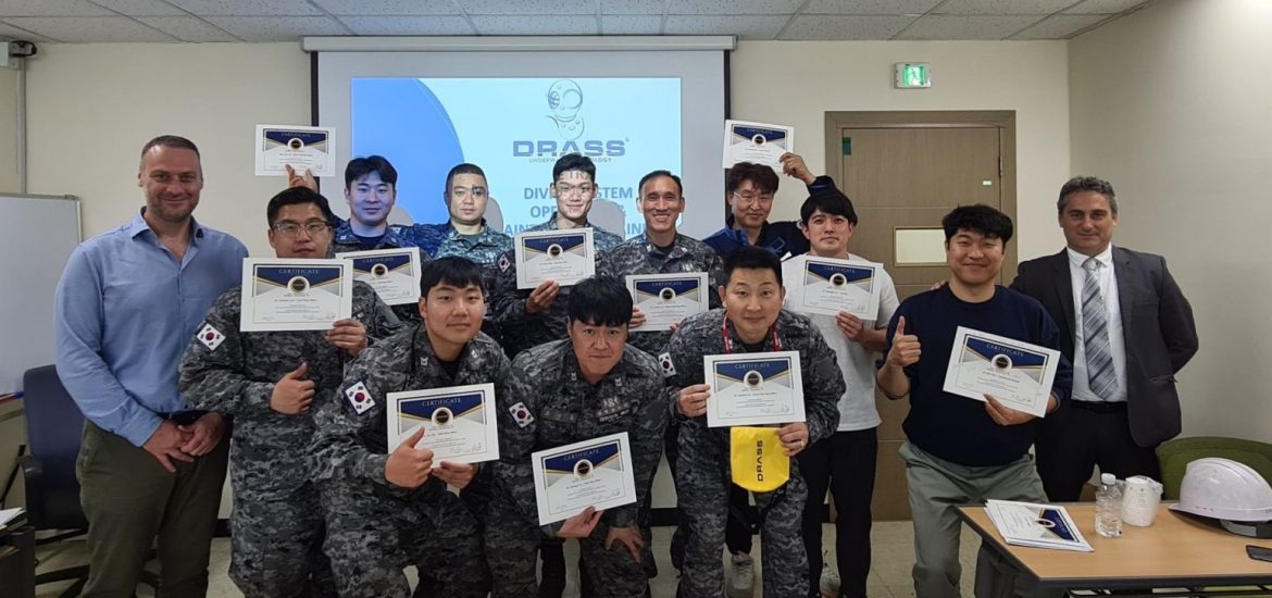 Korean Navy Officers and local technical partners completed an in-depth 2-week DRASS course aboard the new ASR-II submarine rescue ship.